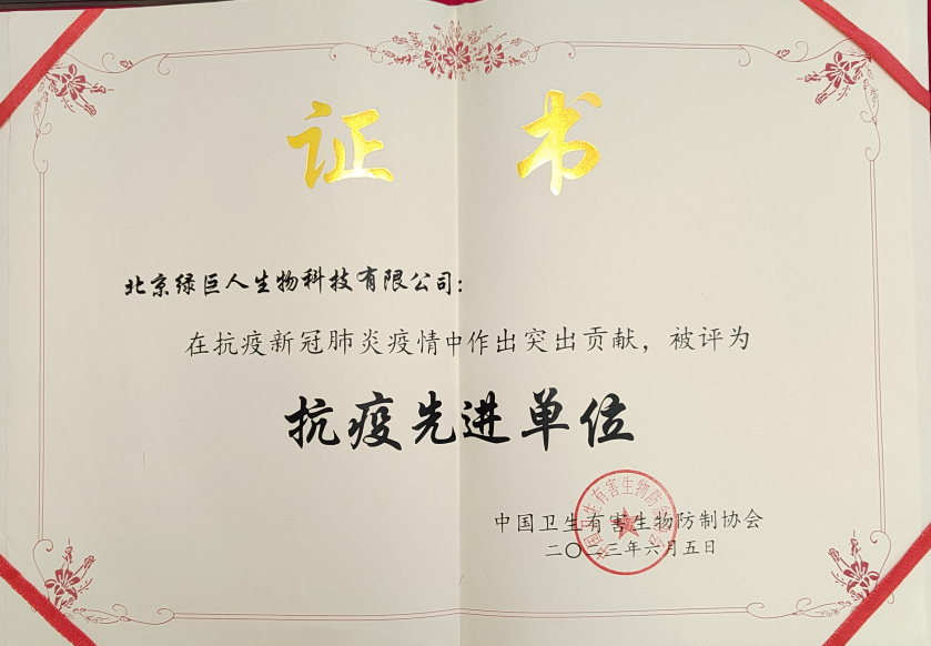 同時,在2023年6月5日抗疫先進單位頒獎儀式上,北京綠巨人因在抗擊新冠肺炎疫情中作出突出貢獻,被評為“抗疫先進單位”。